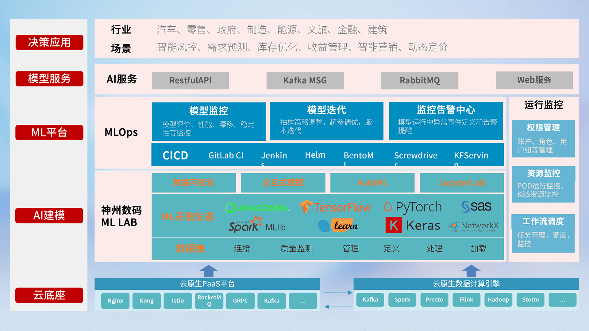 数据+模型双引擎驱动,,,面向智能服务场景,,,,快速灵活利用AI技术,,支持业务决策,,,,助力企业智能化转型破局。。。